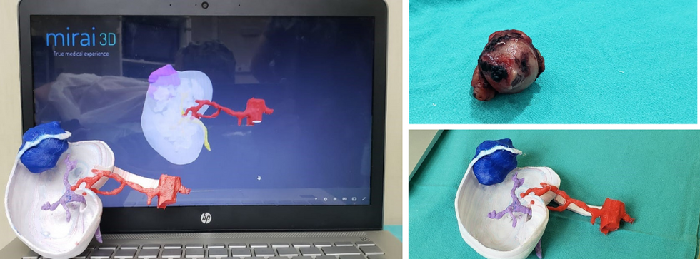 En este caso, en un principio se había planeado una nefrectomía radical por su proximidad a la vía excretora. Tener el modelo físico y virtual del paciente les permitió entender mejor la anatomía y la localización del tumor renal. Consecuentemente, dio la posibilidad a los cirujanos de tratar de realizar una estrategia menos invasiva.